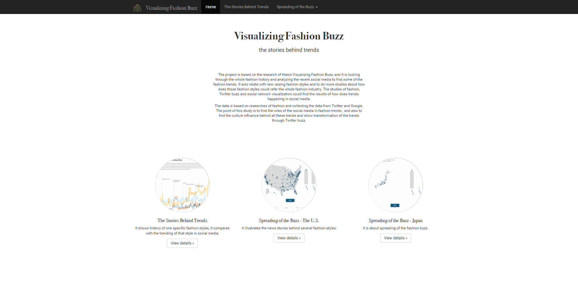 Using more than 20k tweets data from twitter to analyze and using d3.js to make a website includes multiple ways(fashion map, line chart, word cloud, and related fashion news) to visualize how specific fashion trends on Twitter and also compared differences of the trends between U.S and Japan. (Co-op with Xinhe Yu)